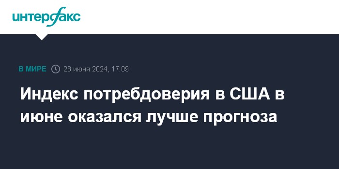Индекс потребдоверия в США в июне оказался лучше прогноза