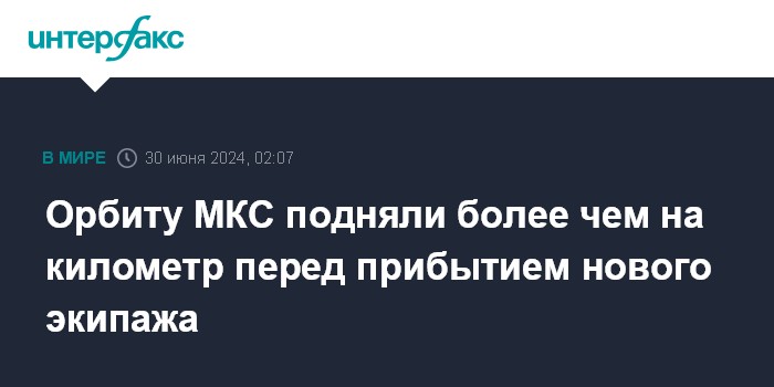 Москва. 30 июня. INTERFAX.RU - Орбиту Международной космической станции (МКС) подняли на 1,36 км для подготовки к прибытию пилотируемого корабля "Союз МС-26" и спуску на Землю "Союза МС-25", сообщили в воскресенье в "Роскосмосе".