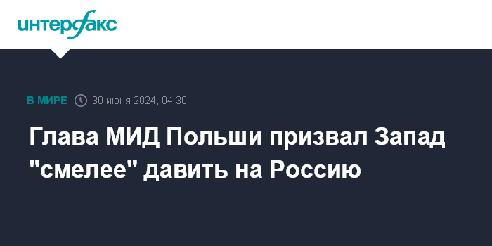 Москва. 30 июня. INTERFAX.RU - Министр иностранных дел Польши Радослав Сикорский заявил, что в нынешней ситуации Западу следует "действовать смелее, чтобы не допустить победы России".