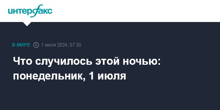 Москва. 1 июля. INTERFAX.RU - Краткая сводка событий, произошедших к утру: