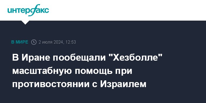 Москва. 2 июля. INTERFAX.RU - Иран задействует все свои возможности для поддержки "Хезболлы", если Израиль решит начать полномасштабную операцию против этой ливанской группировки, заявил Financial Times советник Верховного лидера Ирана аятоллы Хаменеи Камаль Харази. Он также возглавляет стратегический совет Ирана по международным отношениям.