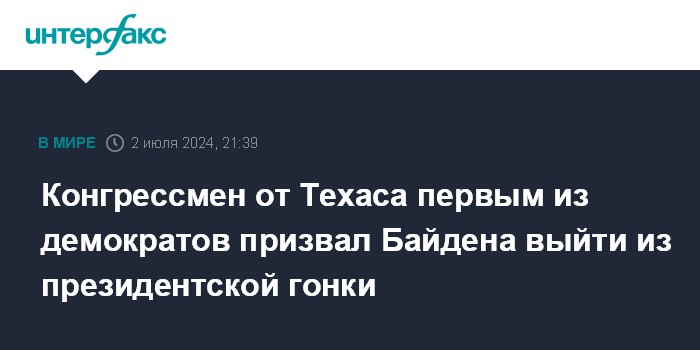 Конгрессмен от Техаса первым из демократов призвал Байдена выйти из президентской гонки