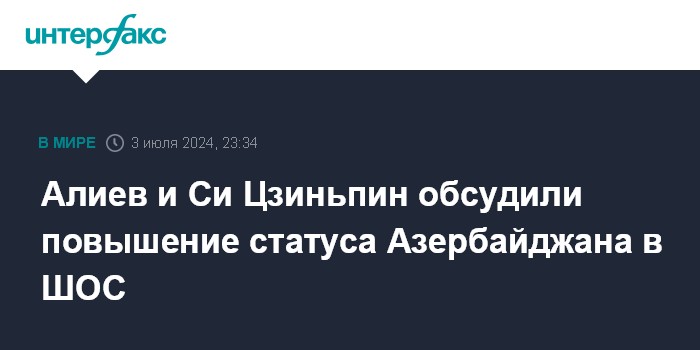 Москва. 3 июля. INTERFAX.RU - Президент Азербайджана Ильхам Алиев в Астане на "полях" саммита ШОС провел встречу с председателем КНР Си Цзиньпином.