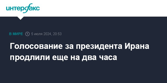 Москва. 5 июля. INTERFAX.RU - В Иране избирательная комиссия решила продлить работу избирательных участков на выборах президента еще раз, теперь до 22:00 по местному времени (21:30 по Москве), сообщил IRNA представитель комиссии Мохсен Эслами.