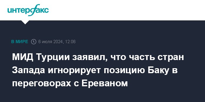 МИД Турции заявил, что часть стран Запада игнорирует позицию Баку в переговорах с Ереваном