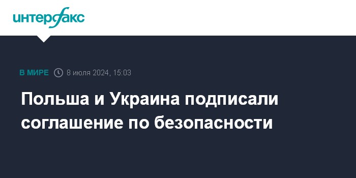 Москва. 8 июля. INTERFAX.RU - Варшава и Киев заключили в понедельник соглашение по безопасности, передает польский телеканал Polsat.