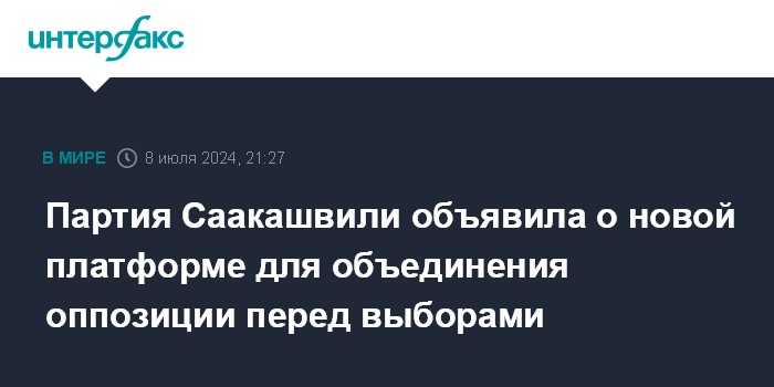 Москва. 8 июля. INTERFAX.RU - На съезде учрежденной бывшим президентом Грузии Михаилом Саакашвили партии "Единое национальное движение" (ЕНД) объявили о создании новой политической платформы "Единство ради спасения Грузии" для объединения оппозиции перед предстоящими в октябре парламентскими выборами.