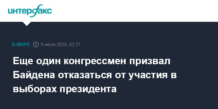 Еще один конгрессмен призвал Байдена отказаться от участия в выборах президента