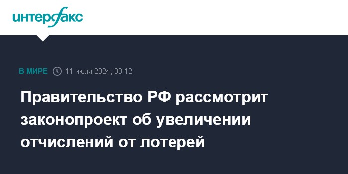 Правительство РФ рассмотрит законопроект об увеличении отчислений от лотерей