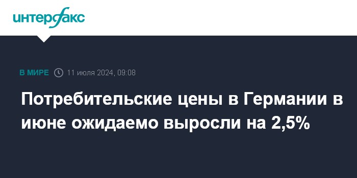 Потребительские цены в Германии в июне ожидаемо выросли на 2,5%
