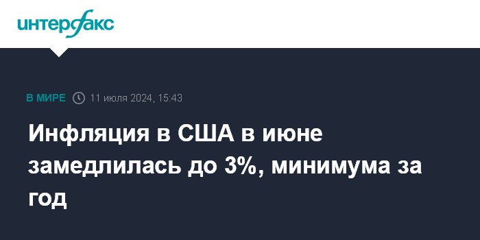 Инфляция в США в июне замедлилась до 3%, минимума за год