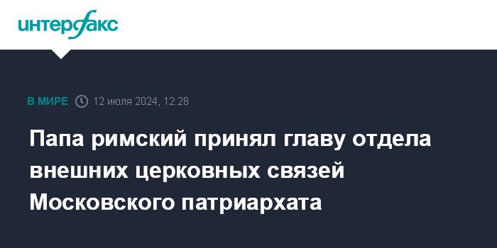 Москва. 12 июля. INTERFAX.RU - Папа римский Франциск дал аудиенцию главе отдела внешних церковных связей Московского патриархата митрополиту Антонию, сообщает агентство ЭФЭ со ссылкой на Зал печати Святого престола.