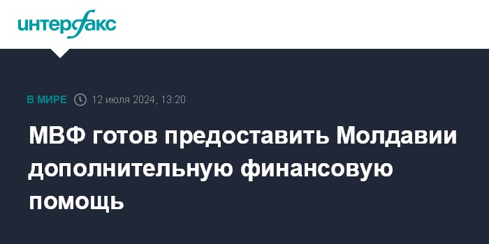 Москва. 12 июля. INTERFAX.RU - Международный валютный фонд готов предоставить Молдавии дополнительную финансовую помощь, сказал заместитель директора-распорядителя МВФ Кендзи Окамура на встрече в Кишиневе с премьер-министром страны Дорином Речаном, сообщила пресс-служба молдавского правительства.