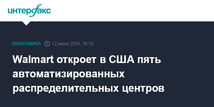 Москва. 12 июля. INTERFAX.RU - Walmart Inc., крупнейшая в США компания розничной торговли, откроет пять автоматизированных распределительных центров для свежих продуктов по всей стране.