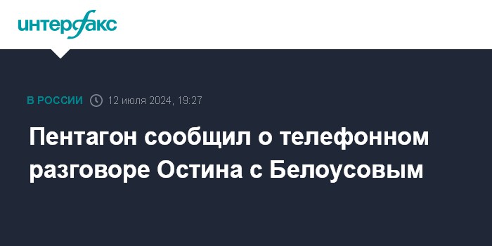 Москва. 12 июля. INTERFAX.RU - Глава Пентагона Ллойд Остин провел телефонный разговор с министром обороны России Андреем Белоусовым, сообщила пресс-секретарь оборонного ведомства США Сабрина Сингх.