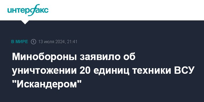 Минобороны заявило об уничтожении 20 единиц техники ВСУ "Искандером"