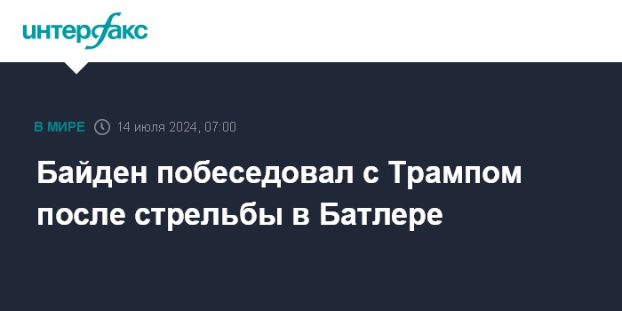 "Президент Джо Байден разговаривал с Дональдом Трампом в субботу после стрельбы на митинге бывшего президента в Батлере, штат Пенсильвания", - говорится в сообщении.