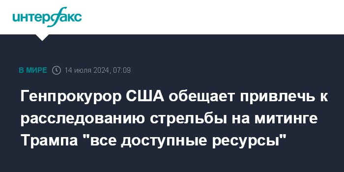 Генпрокурор США обещает привлечь к расследованию стрельбы на митинге Трампа "все доступные ресурсы"