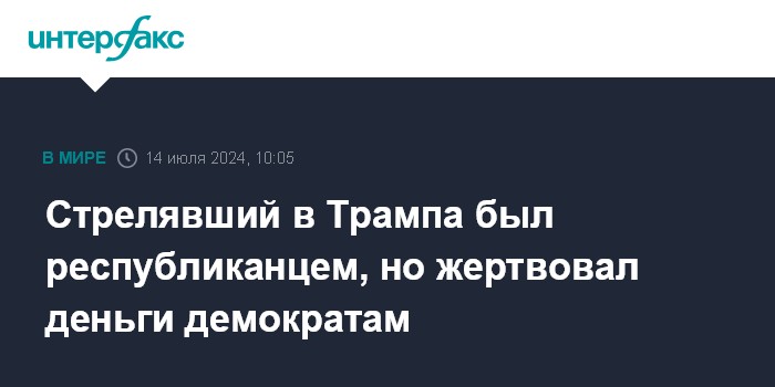 Стрелявший в Трампа был республиканцем, но жертвовал деньги демократам