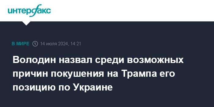 Володин назвал среди возможных причин покушения на Трампа его позицию по Украине