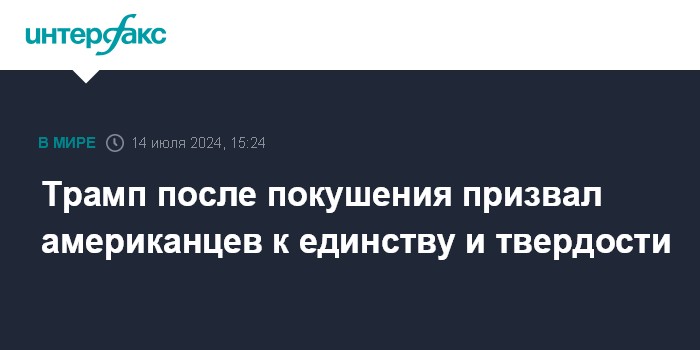 Москва. 14 июля. INTERFAX.RU - Экс-президент США Дональд Трамп, после покушения на него на митинге, обратился к согражданам с призывом не допустить раскола и продемонстрировать силу и упорство.