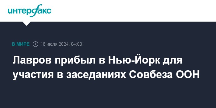 Москва. 16 июля. INTERFAX.RU - Министр иностранных дел России Сергей Лавров прибыл для участия в заседаниях Совета безопасности ООН в Нью-Йорк, сообщила официальный представитель МИД РФ Мария Захарова.