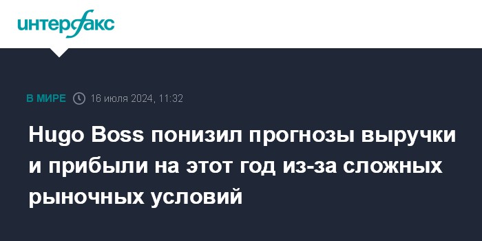 Москва. 16 июля. INTERFAX.RU - Немецкий производитель одежды и аксессуаров Hugo Boss AG понизил прогнозы выручки и прибыли на 2024 год. В компании отметили, что сложные макроэкономические и геополитические условия негативно влияют на глобальный потребительский спрос.