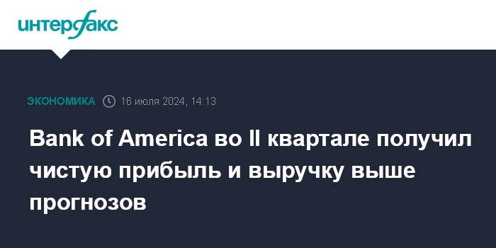Bank of America во II квартале получил чистую прибыль и выручку выше прогнозов
