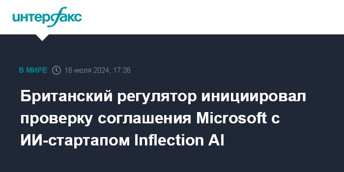 Москва. 16 июля. INTERFAX.RU - Британское Управление по защите конкуренции и рынкам (Competition and Markets Authority, CMA) инициировало расследование сделки Microsoft Corp. с ИИ-стартапом Inflection AI.