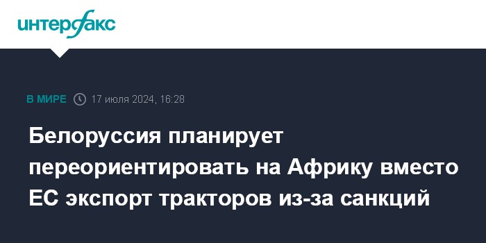 Белоруссия планирует переориентировать на Африку вместо ЕС экспорт тракторов из-за санкций
