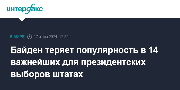 Байден теряет популярность в 14 важнейших для президентских выборов штатах