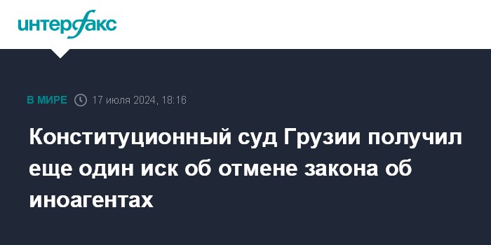 Москва. 17 июля. INTERFAX.RU - Больше ста грузинских неправительственных организаций вслед за президентом Саломе Зурабишвили направили в Конституционный суд иск с требованием отмены закона "О прозрачности иностранного влияния" (закон об иноагентах). Иск подписала 121 неправительственная организация.