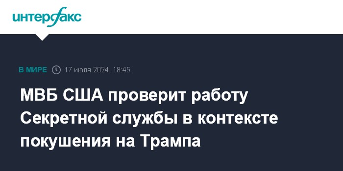 Москва. 17 июля. INTERFAX.RU - Управление генерального инспектора Министерства внутренней безопасности США начало расследование работы Секретной службы на митинге в штате Пенсильвания 13 июля, где было совершено покушение на экс-президента Дональда Трампа, сообщает сайт ведомства.