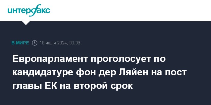 Заседавший в Брюсселе 27-28 июня Европейский совет предложил кандидатуру фон дер Ляйен на второй срок в качестве председателя Еврокомиссии.