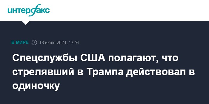 Спецслужбы США полагают, что стрелявший в Трампа действовал в одиночку