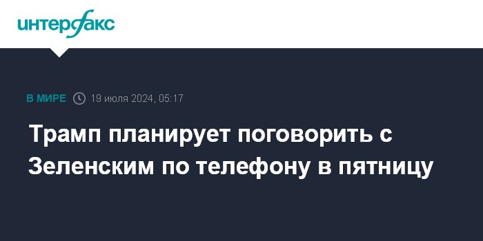 Трамп планирует поговорить с Зеленским по телефону в пятницу