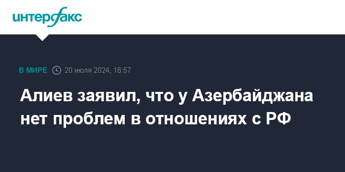 Москва. 20 июля. INTERFAX.RU - Президент Азербайджана Ильхам Алиев констатировал отсутствие проблемных вопросов в отношениях с Москвой.