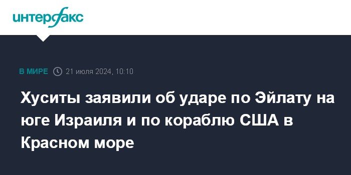 Хуситы заявили об ударе по Эйлату на юге Израиля и по кораблю США в Красном море