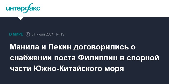 Манила и Пекин договорились о снабжении поста Филиппин в спорной части Южно-Китайского моря