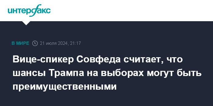 Вице-спикер Совфеда считает, что шансы Трампа на выборах могут быть преимущественными