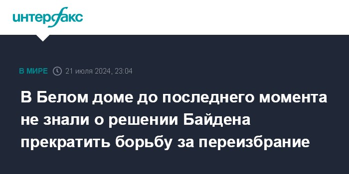 "Члены аппарата, которые работают на президента Байдена и вице-президента Камалу Харрис не имели никаких данных о том, что Байден принял решение выйти из президентской гонки", - говорится в сообщении.