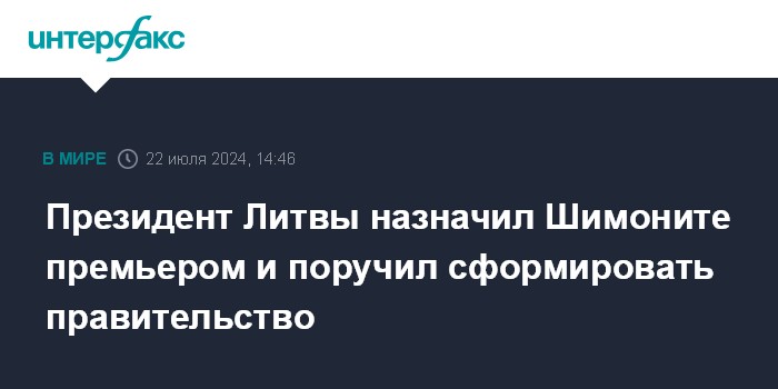 Президент Литвы назначил Шимоните премьером и поручил сформировать правительство