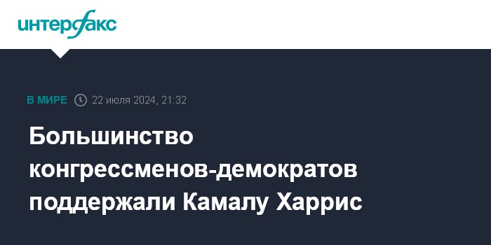 Москва. 22 июля. INTERFAX.RU - Большинство демократов в Палате представителей и Сенате Конгресса США поддержали вице-президента страны Камалу Харрис, претендующую на выдвижение кандидатом в президенты от Демократической партии, сообщает в понедельник The Hill.