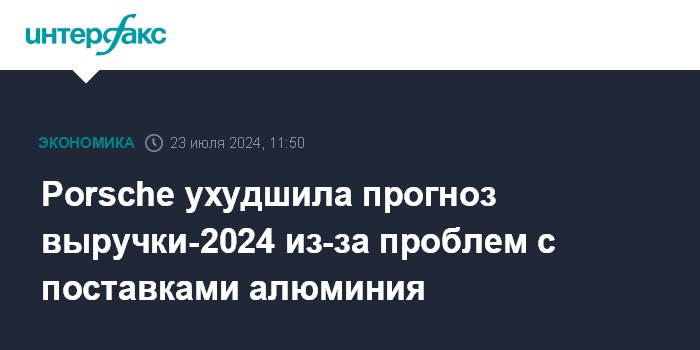 Москва. 22 июля. INTERFAX.RU - Германский производитель автомобилей класса "люкс" Porsche AG ухудшил прогноз выручки на 2024 год, сообщив, что, вероятно, будет вынужден временно сократить производство из-за проблем с поставками алюминия.