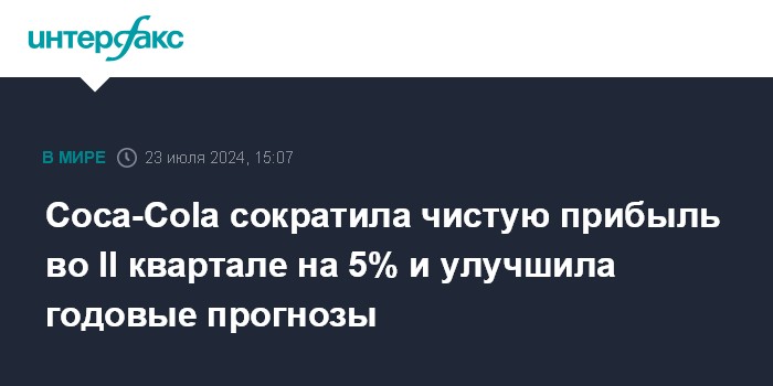 Coca-Cola сократила чистую прибыль во II квартале на 5% и улучшила годовые прогнозы
