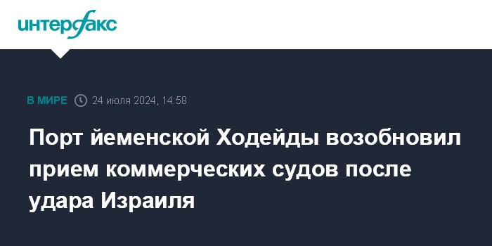 Порт йеменской Ходейды возобновил прием коммерческих судов после удара Израиля