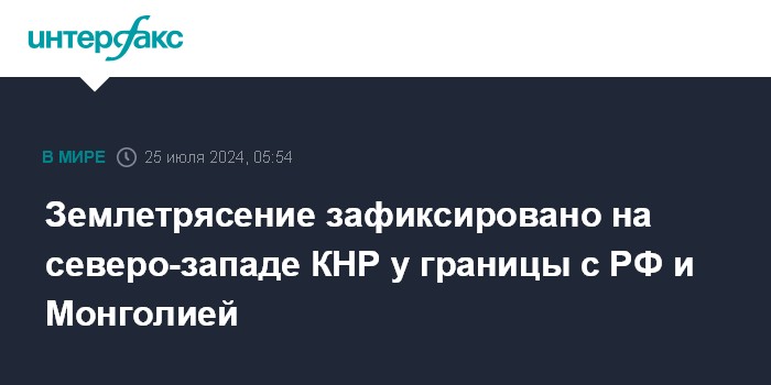 Землетрясение зафиксировано на северо-западе КНР у границы с РФ и Монголией