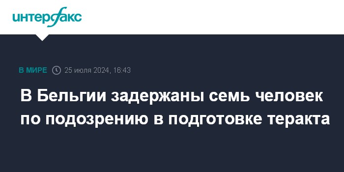 Москва. 25 июля. INTERFAX.RU - Бельгийская федеральная полиция провела в четверг 14 обысков и задержала семь человек по подозрению в участии в деятельности террористической группы, финансировании терроризма и подготовке теракта, сообщил телеканал RTBF.