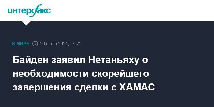Байден заявил Нетаньяху о необходимости скорейшего завершения сделки с ХАМАС