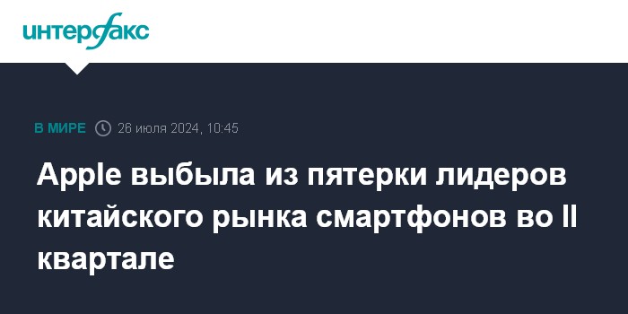 Apple выбыла из пятерки лидеров китайского рынка смартфонов во II квартале